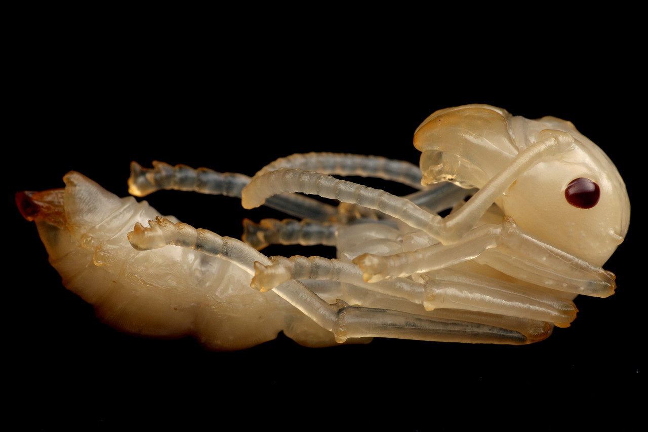 卵を産みつけられると、体内をハエの幼虫に食べられ、約3週間ほどで成虫が羽化して出てきます。