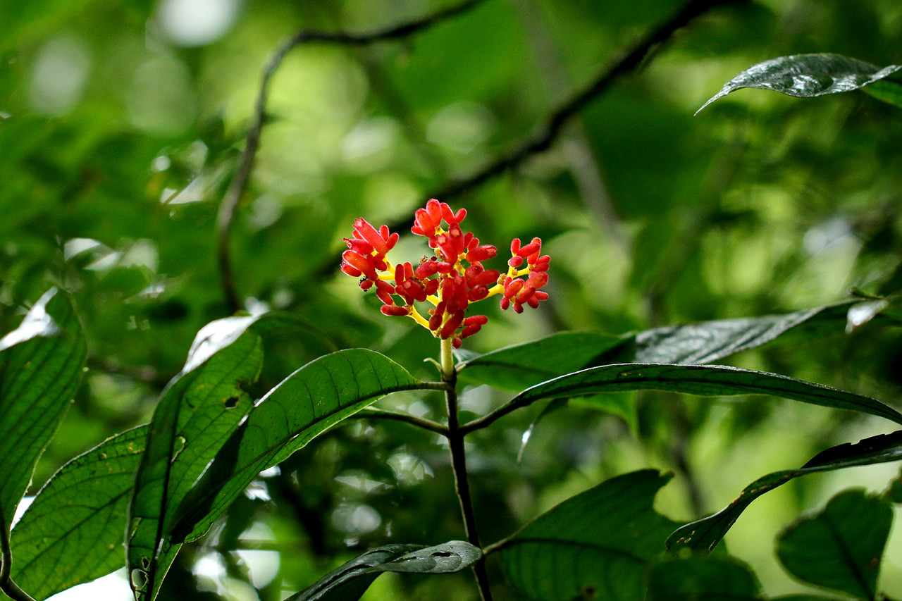 南米フレンチギアナの森で見つけた赤く筒状の花。