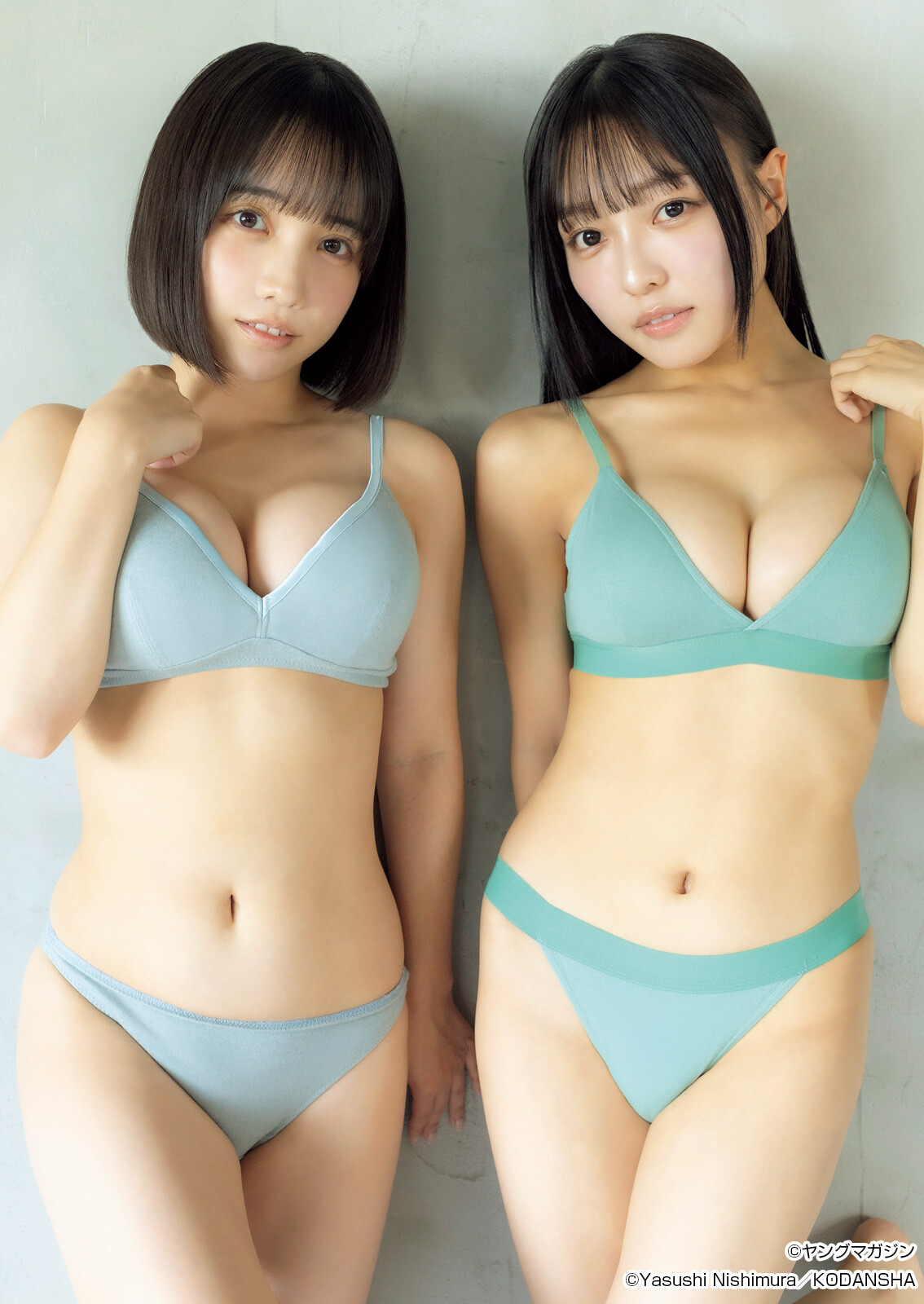 アイドルグループ「INUWASI」のメンバー・はのんまゆ(年齢非公表)&すずめ(年齢非公表)が、2025年11月9日発売のマンガ誌「週刊ヤングマガジン」で、初ペア水着グラビアを披露しました。
