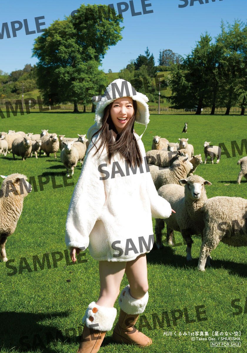 その美しい自然の中で弾ける笑顔、癒しの柔らかい表情、滑らかで透き通るような肌、しなやかで美しいスタイルを存分に披露している。さらに、他では見ることが出来ない、羊になりきった可愛らしい衣装も必見。写真集だからこそのドキッとする衣装にも挑戦し、大人の女性としての美しさ、明るく元気な可愛らしさ、飾らない素の表情など、刈川くるみ史上最高に開放的で、そのままの彼女を堪能できる写真集が完成した。見た人に明るいパワーを与えるような彼女らしい作品となっている。