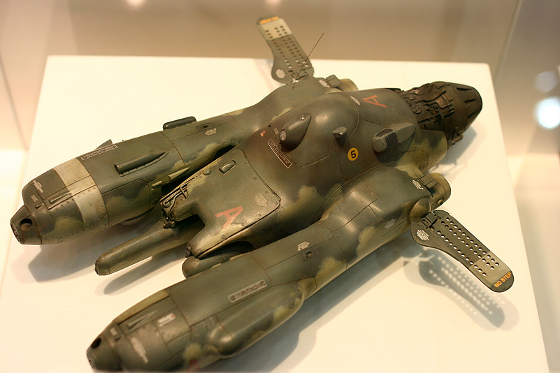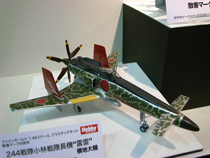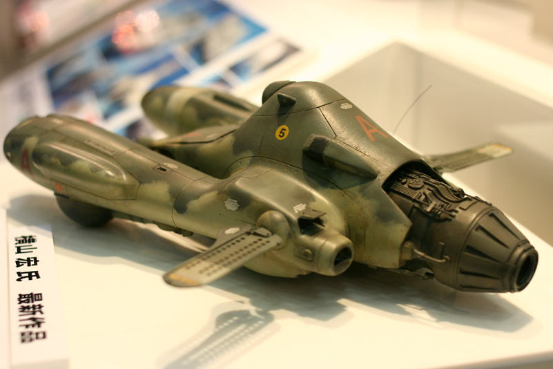 ■ファインモールドのブースにスカイ・クロラの散香マークBの改造作例が幾つか展示されてました。なんつっても「散香マークB“ナハトイェガー”が劇燃えっしょ!(あくまで個人的にですが)。ドイツの夜戦機によく見られる蛇行迷彩とリヒテシュタイン・レーダーを装備した二重反転プロペラ装備のプッシャー型戦闘機とか美味しすぎる。しかもスピナーに例のくるくるもっ。実は以前自分が描いた、「ドイツ機風散香」がこの作例にちょっと似てるんですが、皆考える事はおなじだなぁ、と(笑 ちなみにこのスピナーのくるくるマーキングは、敵の弾を避ける為の御呪い的な意味があるそうで、後ろに付いてても何の意味も無いんですけどねぇ、と以前この絵をUPした時にコメント欄で教えて貰いました。