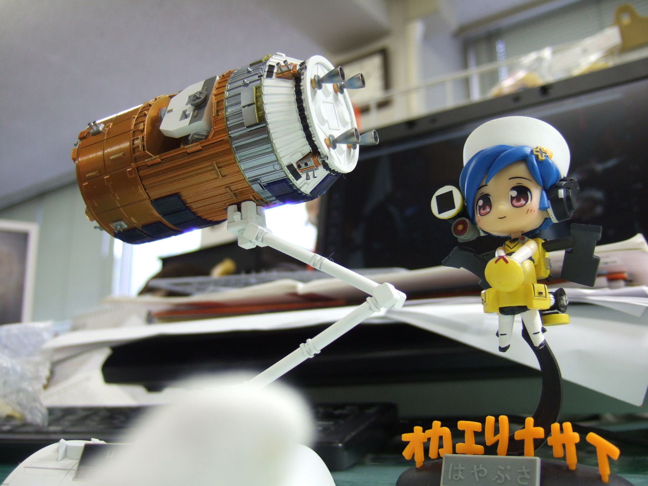 さらに、市販の状況ではイトカワの上に糸川博士は立たないので、パテかなにかでイトカワの地面を平らに処理する必要があります(無理して瞬着で接着することもできますが)。この点にご注意ください。