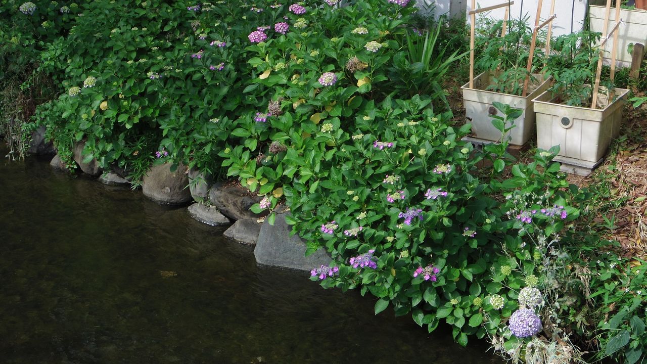 水路、そうですね!花々が咲いていますし、涼しげです。