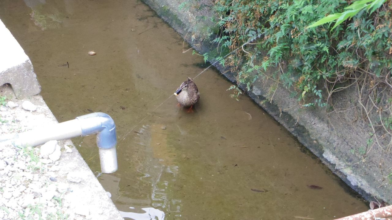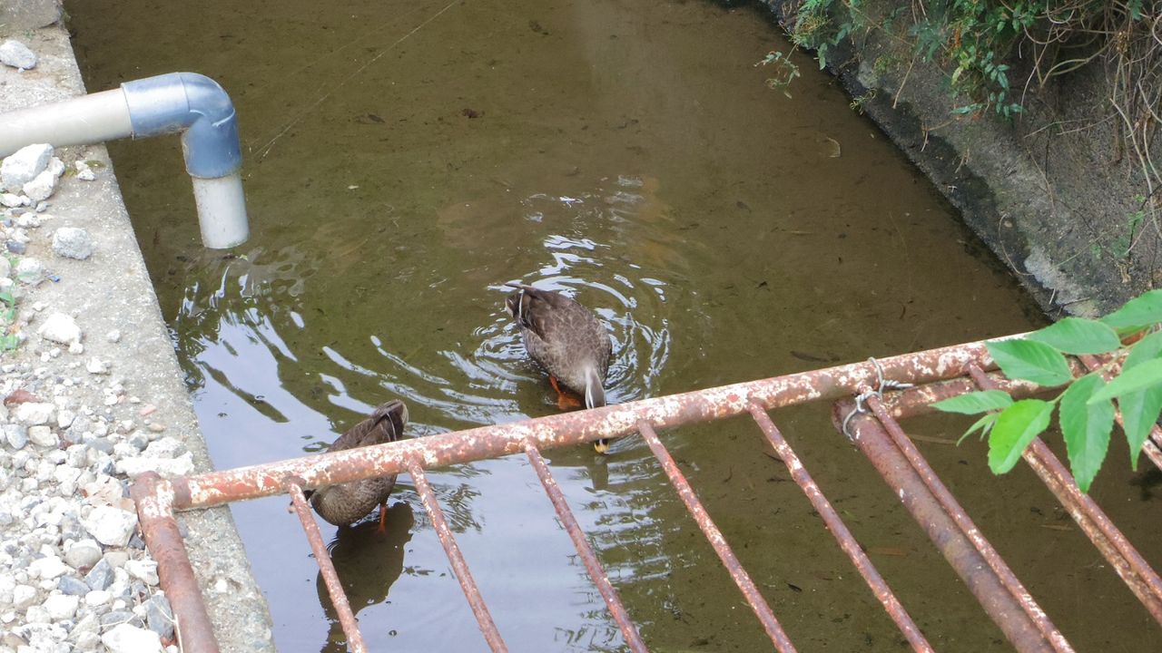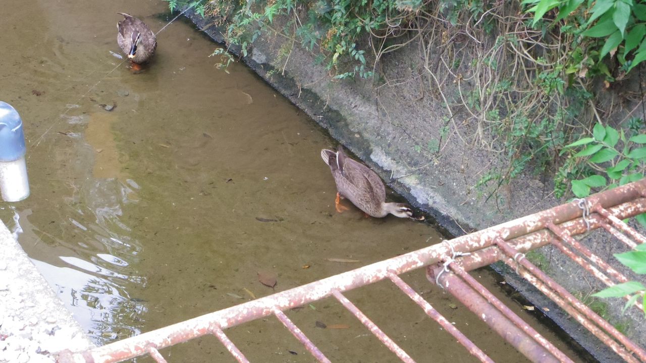 このつがいのカルガモですが、車道を悠々と歩いていました。
