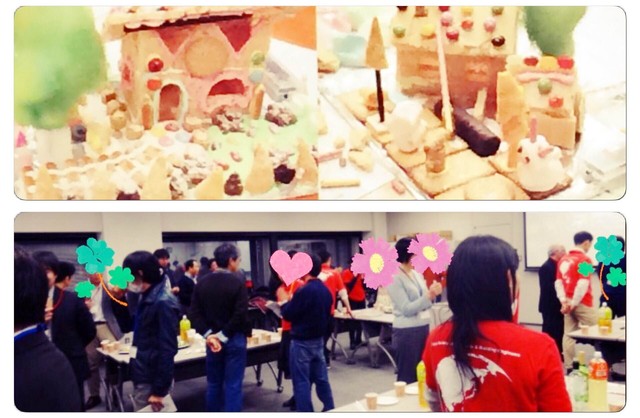 <上:展示物の一例。目黒支部による『お菓子の家づくり教室』のポスター(一部)>