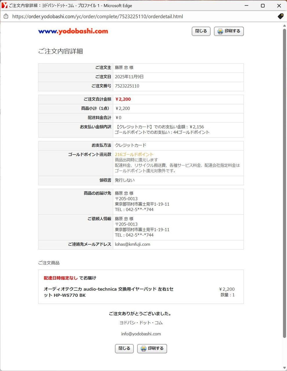 2025/11/13 商品は入荷待ちだったが意外と早く到着した。