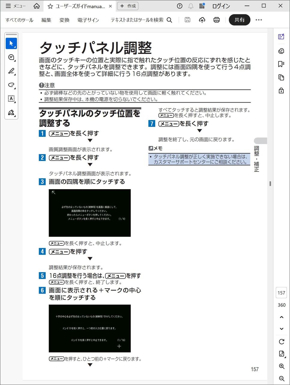 2025/07/27 164,558km ユーザーガイド 157頁の「タッチパネ ル調整」を試した。確かに指先タッチでの精度は向上したが地図画面の『勝手にスクロール』には効果がなかった。後者はハード的な修理が必要なようだ。
