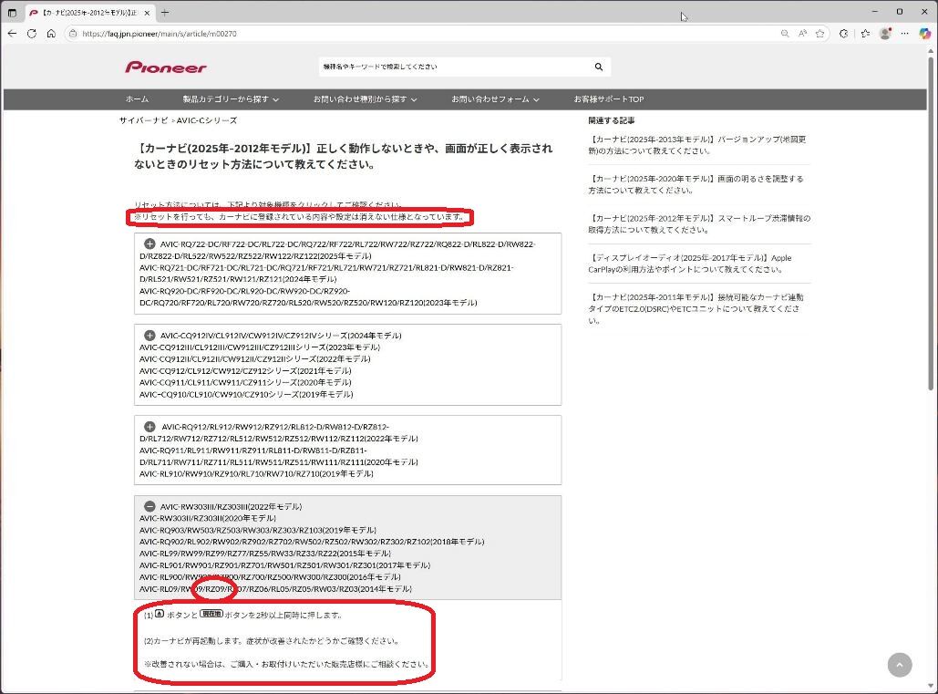 2025/06/22 Pioneerの AV一体型メモリーナビゲーション(2014年モデル AVIC-RZ09 2015/09/05 @71,972円)で異常動作が始った。