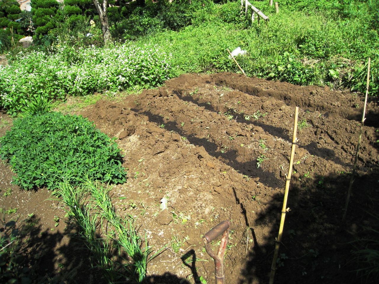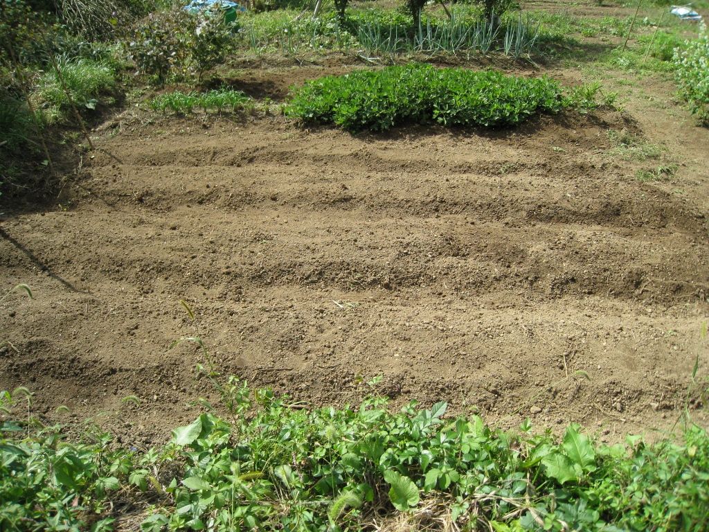 先日堆肥と化成肥料で調整したところに畝をきりました。直蒔きにするか、ポット苗にするかマルチや防虫ネットをどうするか?悩みと楽しみは尽きません。
