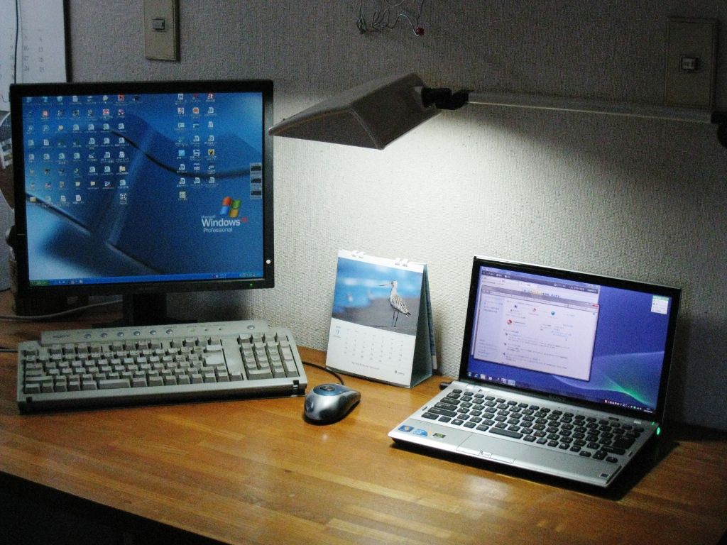 左がマルチメディア処理用のデスクトップPCのモニター。これに右のモバイル用途としての SONY VAIOノート PCVZ129FJが加わりました。これまで HPQ NX4300とか DELL VOSTRO1000が果たしてきたオフィスワーク用途としての後継PCです。