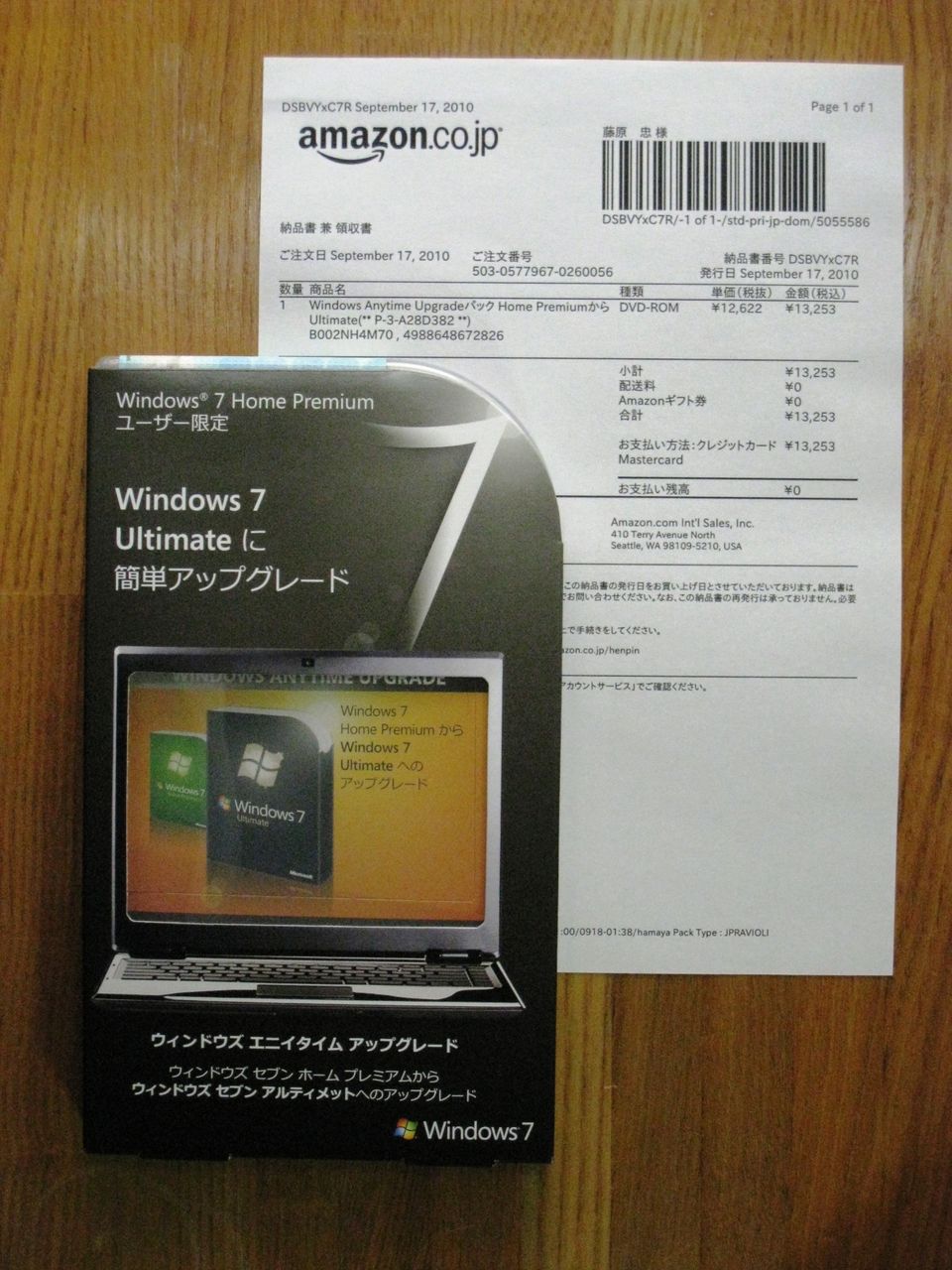 VAIOノートは win7 home premium仕様での納入でしたので anytime upgradeパッケージで ultimateエディッションに上げて windows XP modeで MS office 2003アプリや webDAV機能を生かしていく必要があります。バッテリフル充電で7時間、WiMAX機能付きで重量1.3Kgは重宝します。2010年09月17日