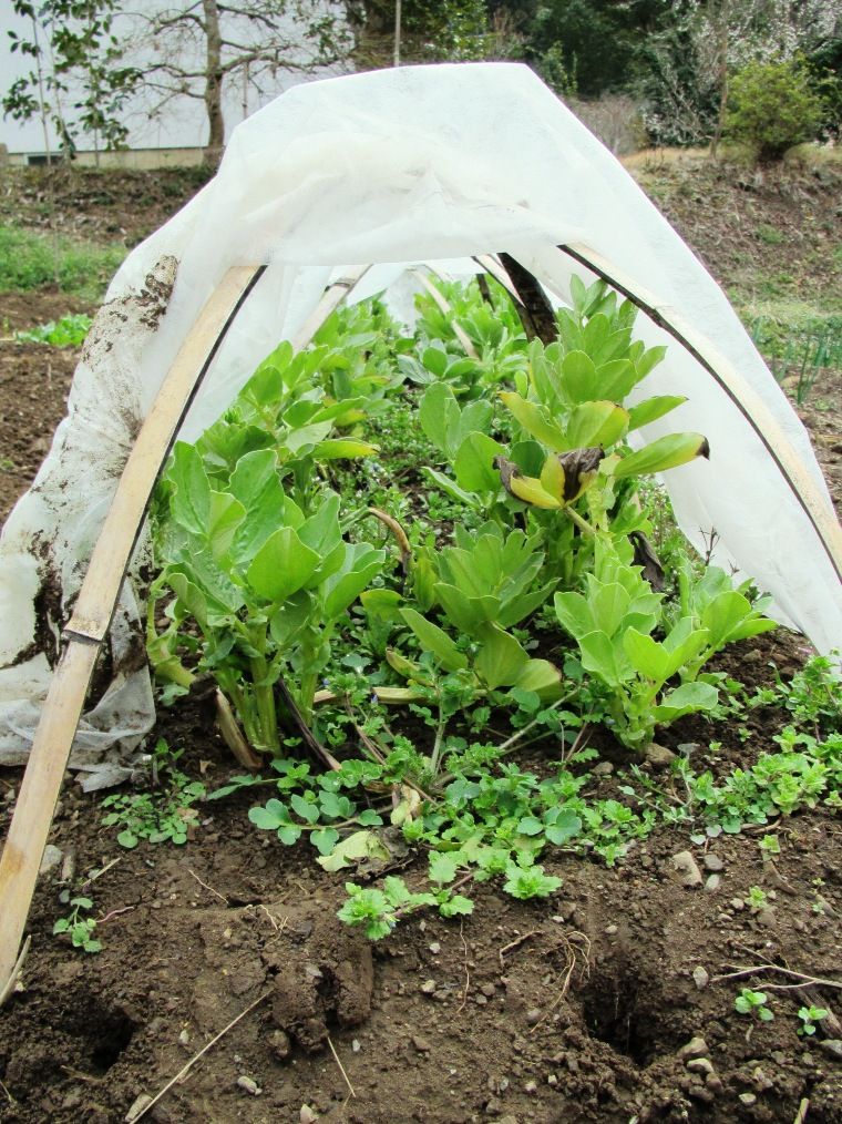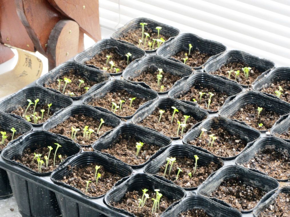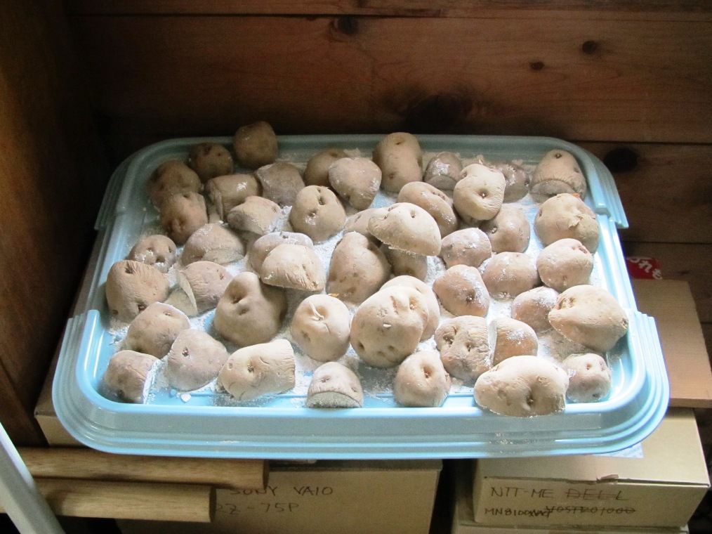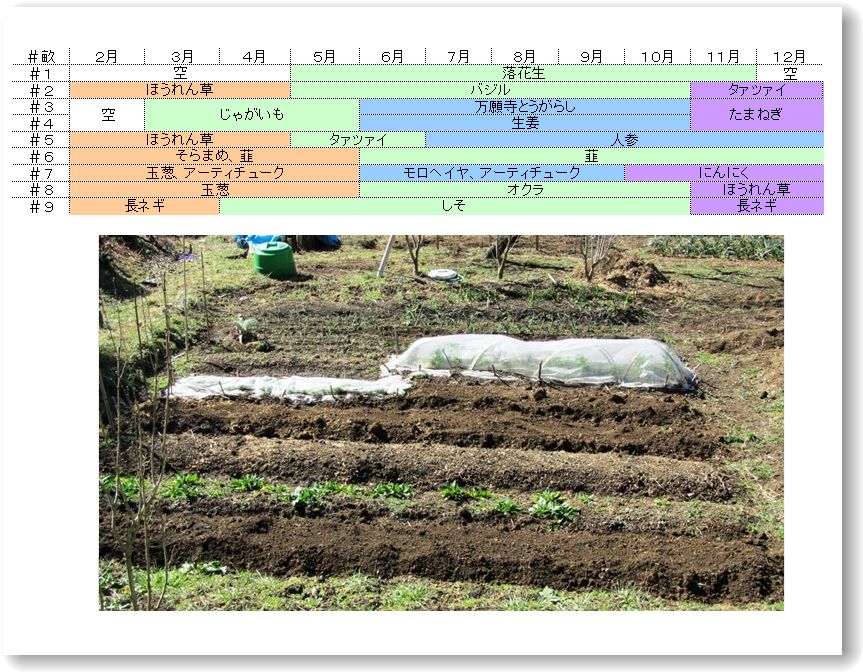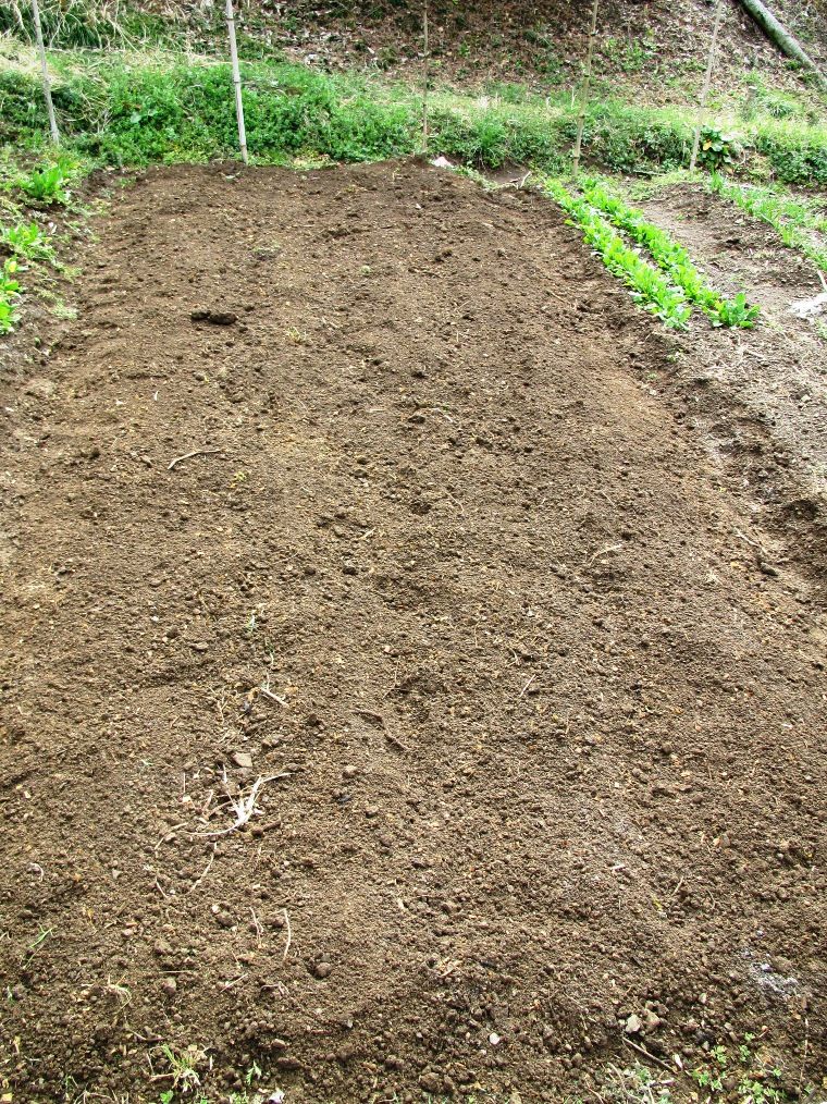 発芽した種芋を 肥の間に寝かし 7-8cm厚に表土をかけます