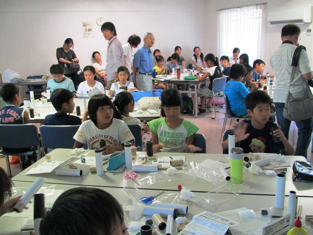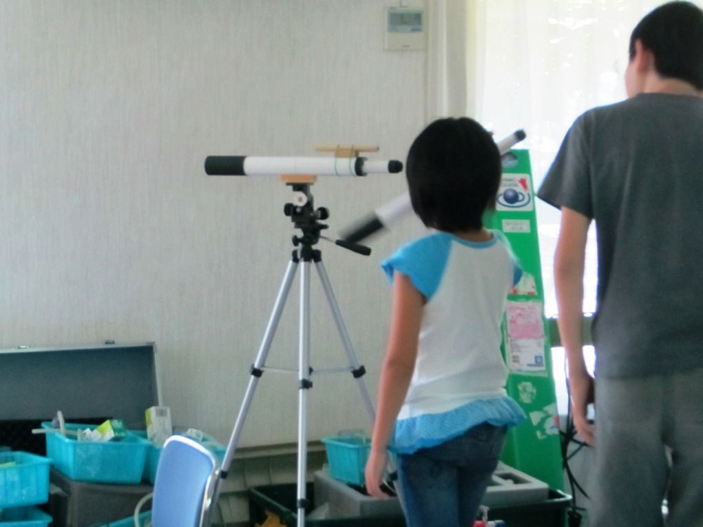 2時間目は本格的な望遠鏡つくり。国立天文台からの講師の指導により90分間で 30名全員が完成しました。が、こんな簡単な工作でも雑な子、丁寧な子、30分で集中が切れてちょっかいを出し始めたり、徘徊し始めたり....。父兄の前でもしっかりしかりつけるジジイになりました。 いろんな生態を観察でき『がっこうの先生』のご苦労が実感できました。