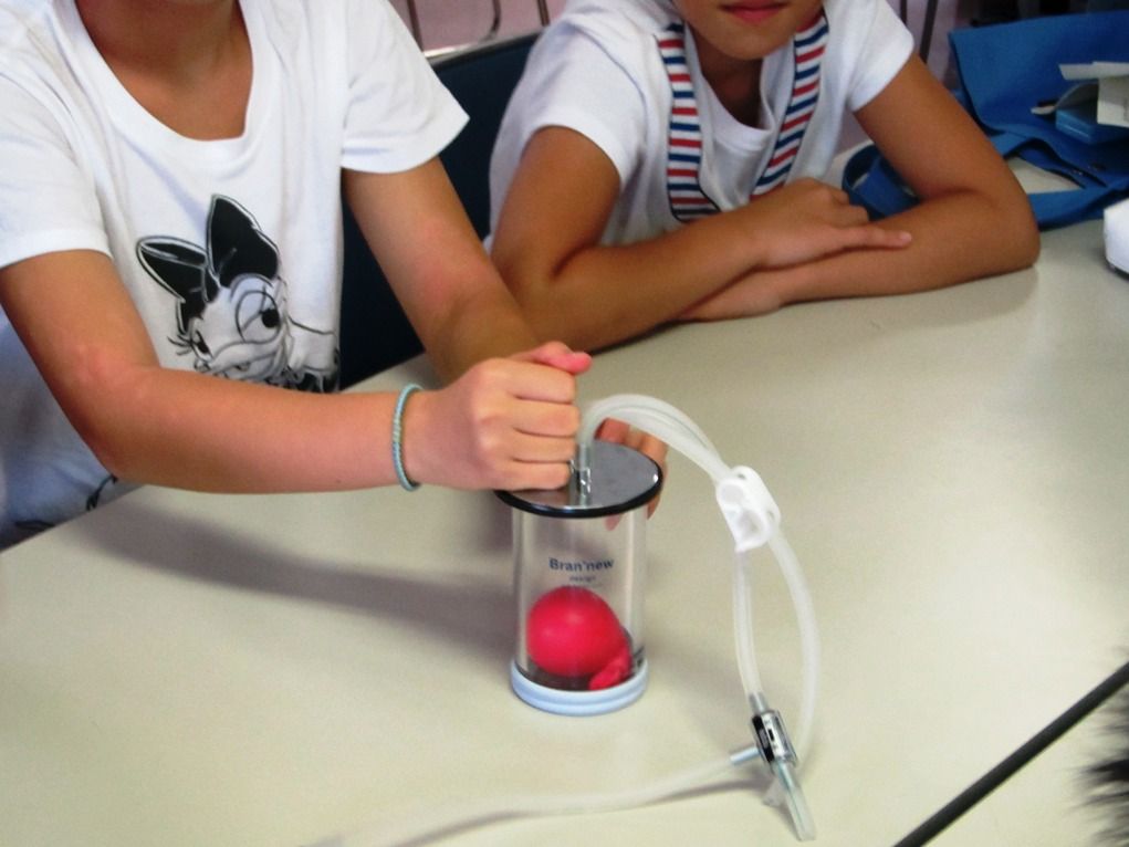 1時間目は大気の役割り。JAXA宇宙教育センターの講師による「宇宙に行ったらこうなる」を身近な素材を使ってのおもしろ実験(脹らんだり縮んだりするマシュマロや大音響で破裂するサランラップ)に歓声が上がります。