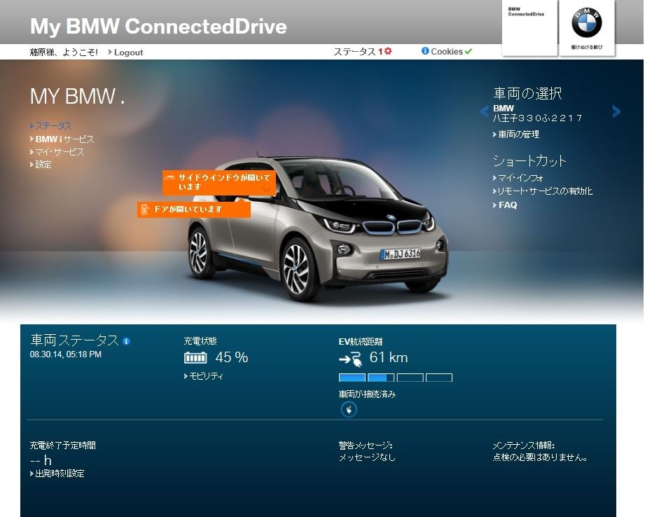 定格は200Vで 15Aですが i3側での充電電流設定「低」だと 100Vでは14Aでリミットされるようです。一晩(10時間)充電では 14.0kWh。120~130Kmってとこかな。