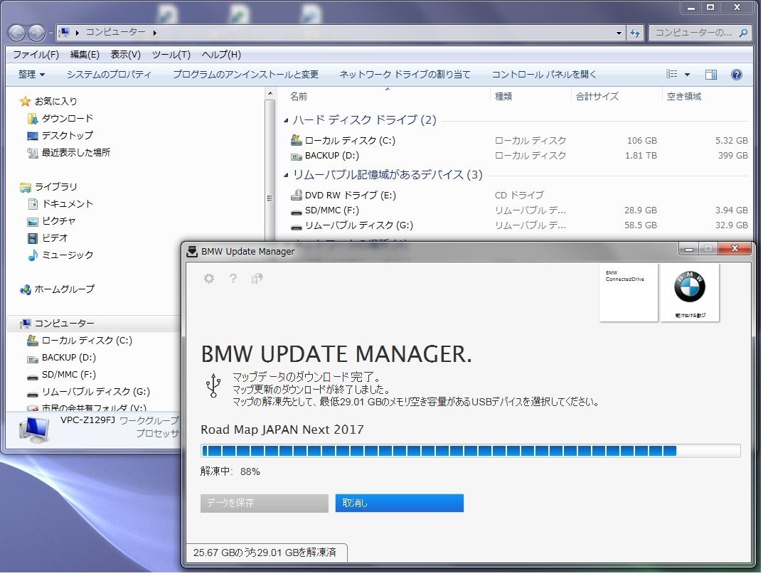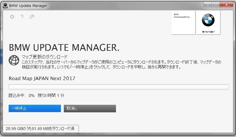 (1) ConnectedDriveのストアから (2) サーバー側の準備待ちで (3) 2年間の地図アップデート