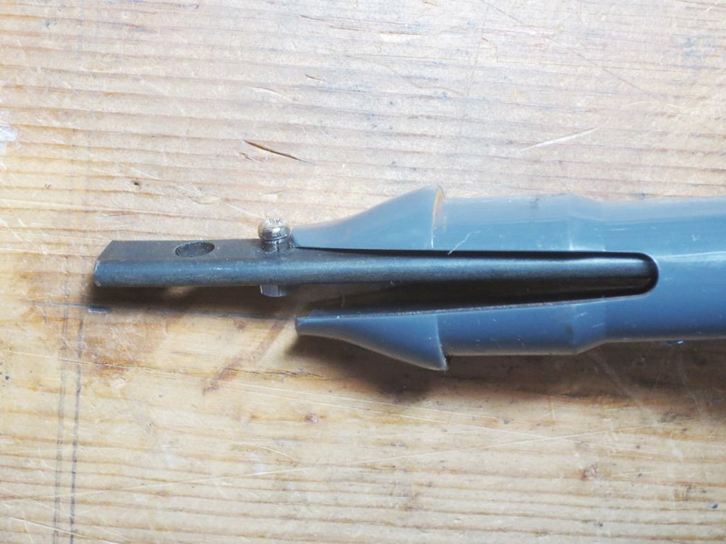 道具箱にあった締付けツールの支柱の穴に鍋頭小ネジ(M2x6)を固定し、ロックの先端を鍋頭の先端に引っかけて解除するSSTをつくりました。