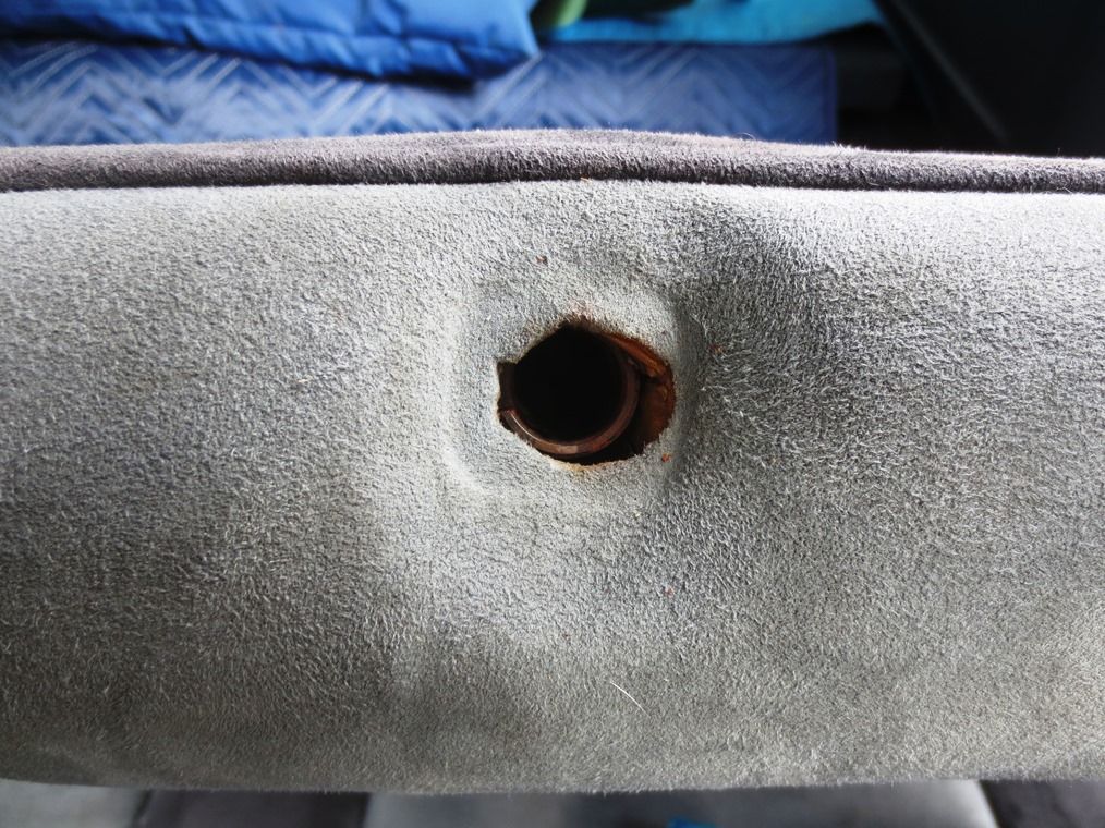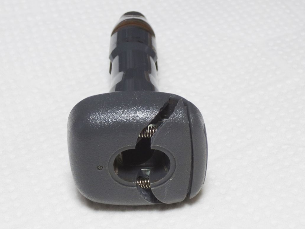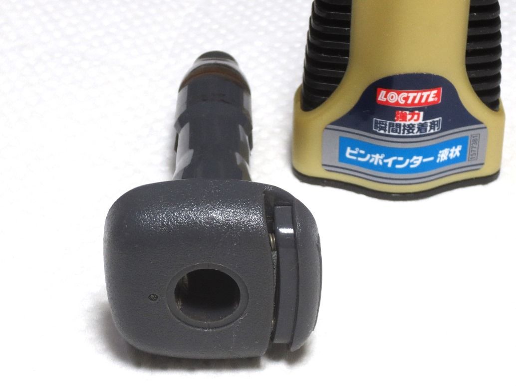 ある寒い日にリアシートのヘッドレストを外そうとロック解除ボタンを押し、ヘッドレストを引っ張っても抜けないのでちょっと捏ねたら根元がバキッと折れていまいました。 樹脂の経年劣化と寒さで脆くなっていたんですね。そのままにしてきましたが暖かくなったので修理です。