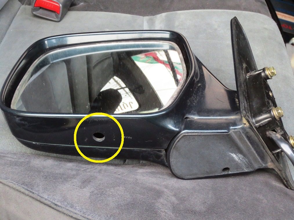 4月末のナックルOH時にドアミラー底部の穴からタッピングスクリューが脱落し、捩じ込んでも空回りするので放置してきましたが、ドアOHの機会に修理しました。