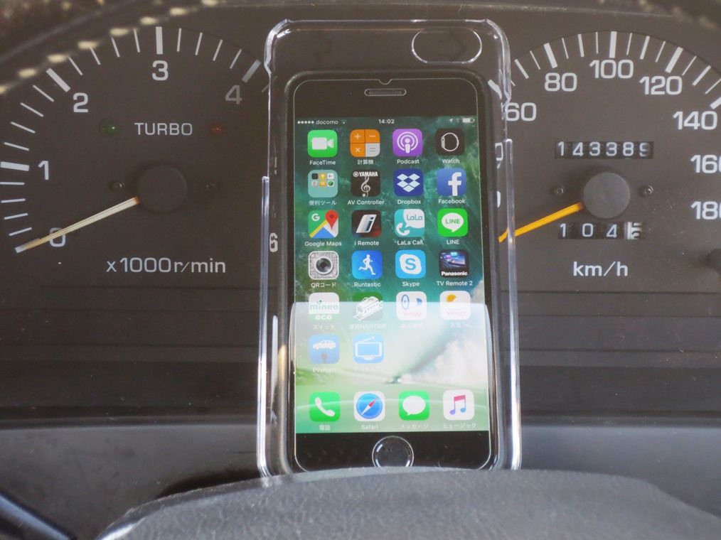 試しに百均ショップの iPhone6 Plusケースをメーターセンターに置いてみたらガタが無く安定するので硬めの透明ポリカ素材のケース(419円税・送込)を amazonに発注しました。
