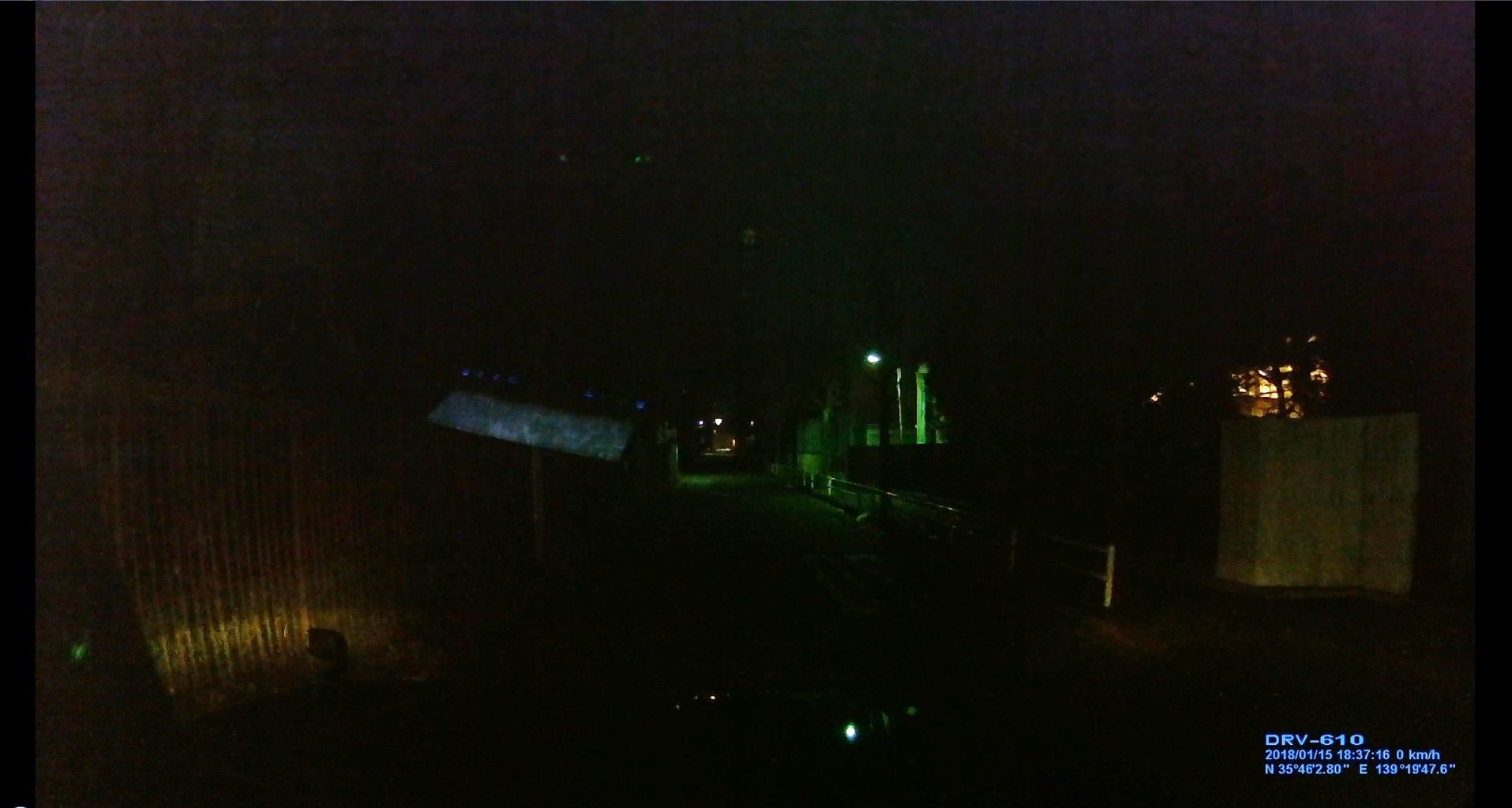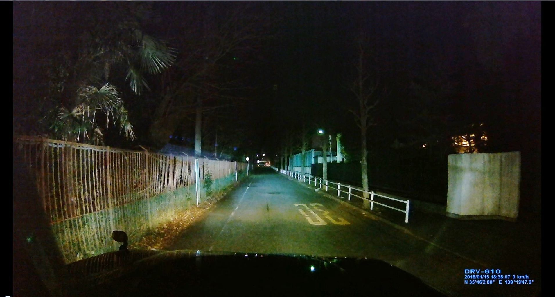 夜間往来の少ない路地にて LEDバルブの Hi/Lo光軸、色、光量を確認しました。メータパネルの Hiビーム表示灯はHIDと同様、点灯しません。