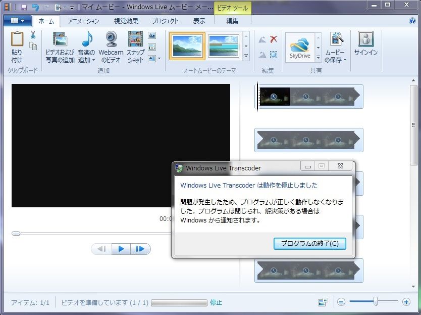 JVC KENWOOD社製DRV-610のMP4ファイルを編集と WMV変換後 blog 投稿する為に使い慣れたWindows Live Movie Makerに取り込もうとした時のエラーです。