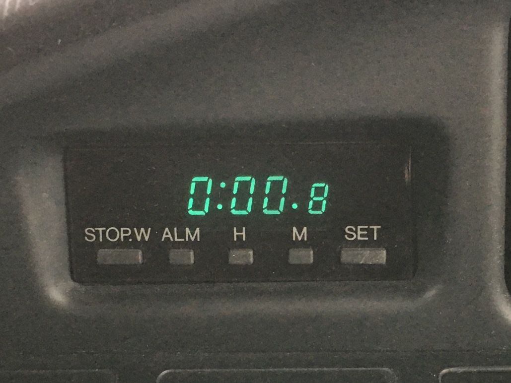 気になっていた右端にドットがひとつ不自然(1/10秒少数点?)に点灯する症状が、今回のバッテリー端子脱着後には消灯していました。STOP.Wやアラームモード時に点灯する小数点らしいので何らかのバグだったと思われます。