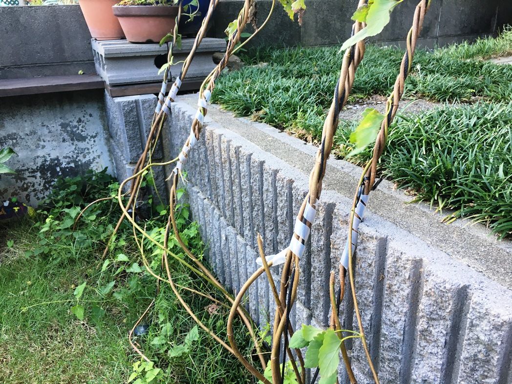 猛烈台風21号のために根元がブロックと接触して3~4本の幹が擦り切れてしまいました。事前に保護の為にスパイラルテープを巻いていたのですがペグが緩んだり抜けたりして接触位置が変わることを想定していなかったことを後悔しています。