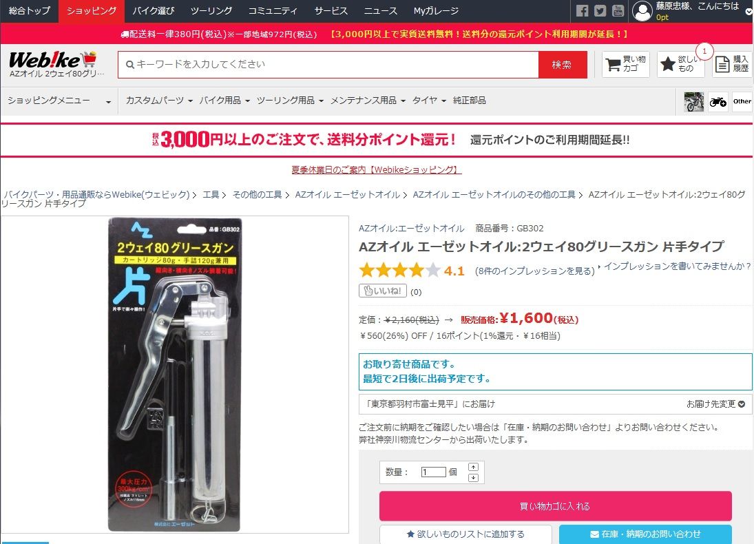 ・グリースガンは期限切れ間近のポイントがあった Web!keから購入することに。