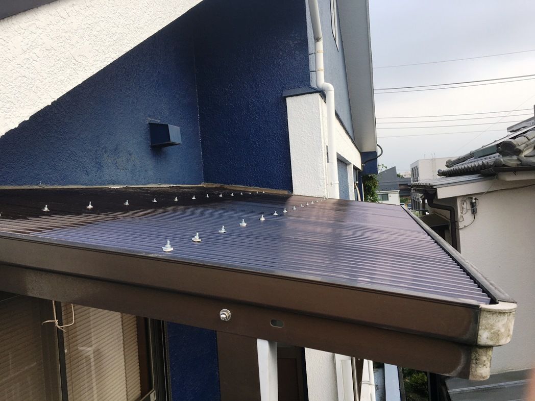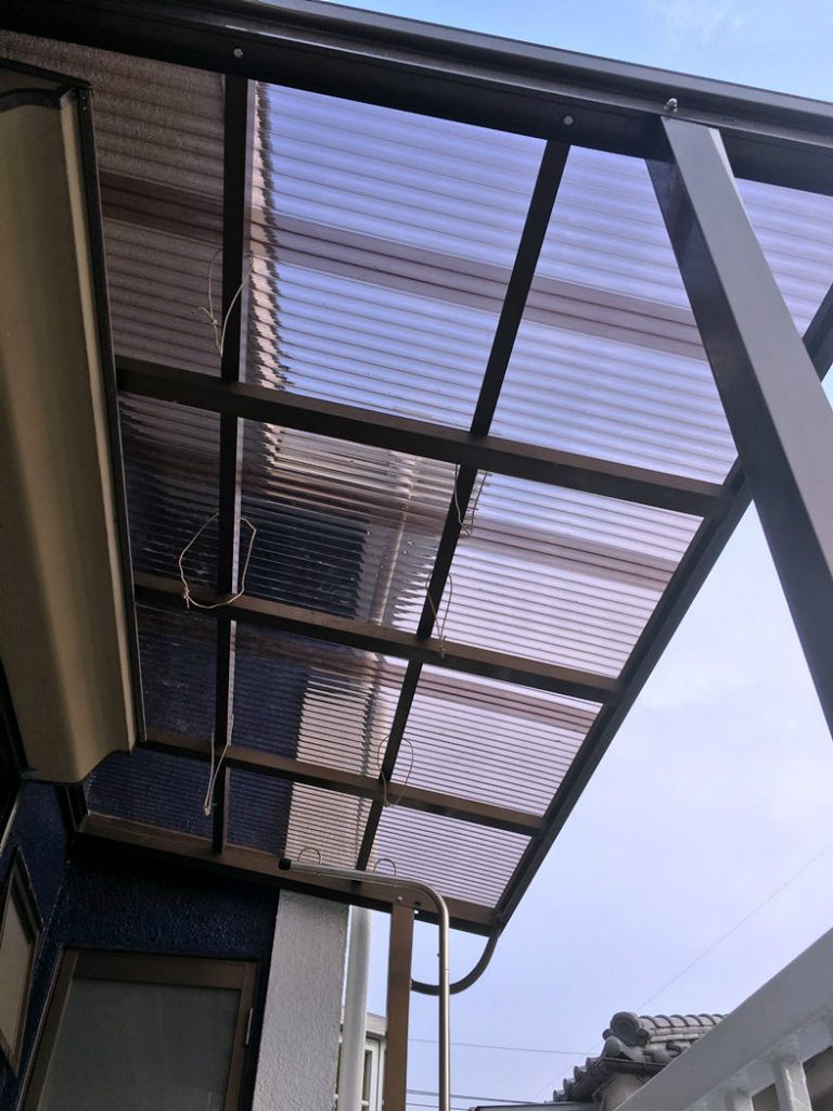 9月5日正午前にゆうパック便が到着。先日の台風で壊れた物干し場の波板屋根の修復です。壊れた波板 5枚を撤去して近所のHCで特売していたポリカ波板に入替えしました。足場がなく手が届かない場所の窮屈な隙間に波板の両端を挿入するのは難作業でした。