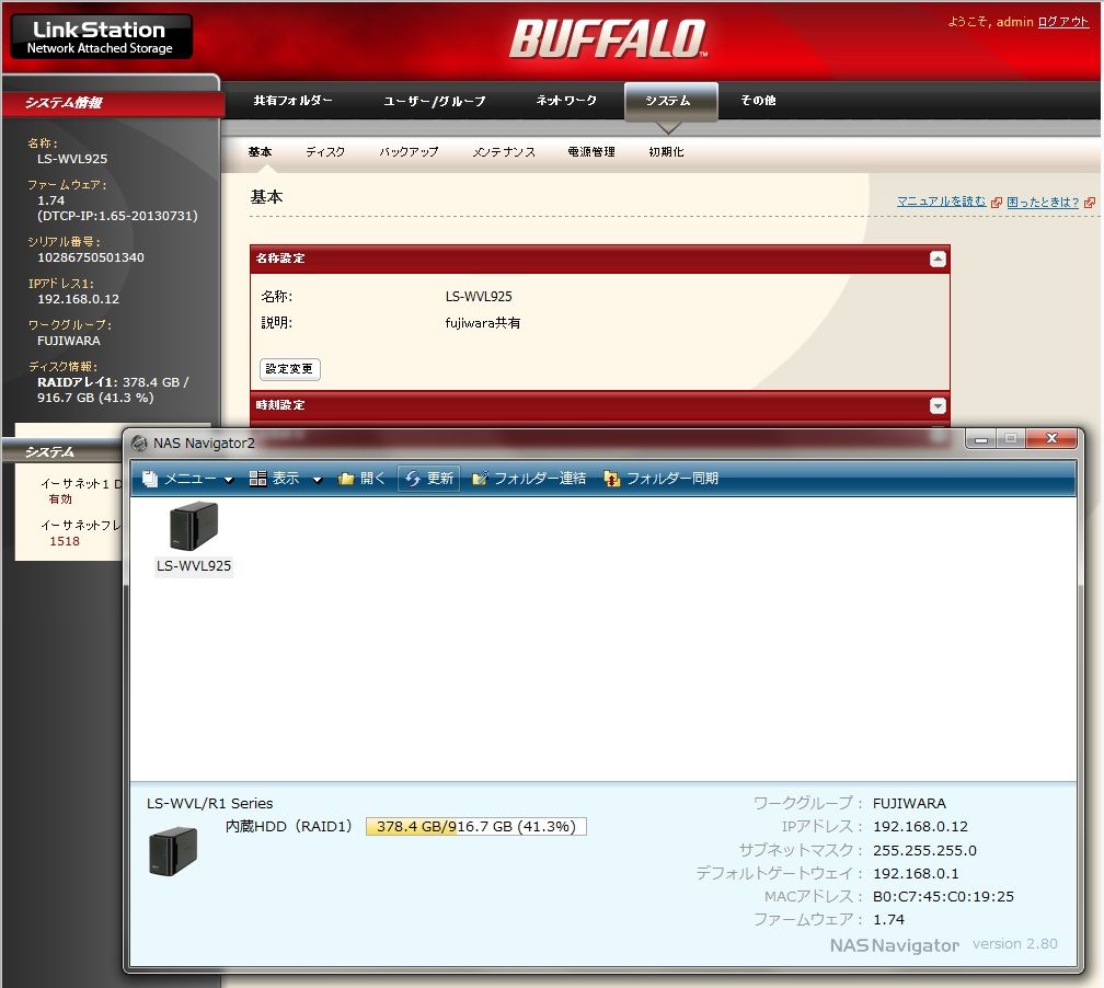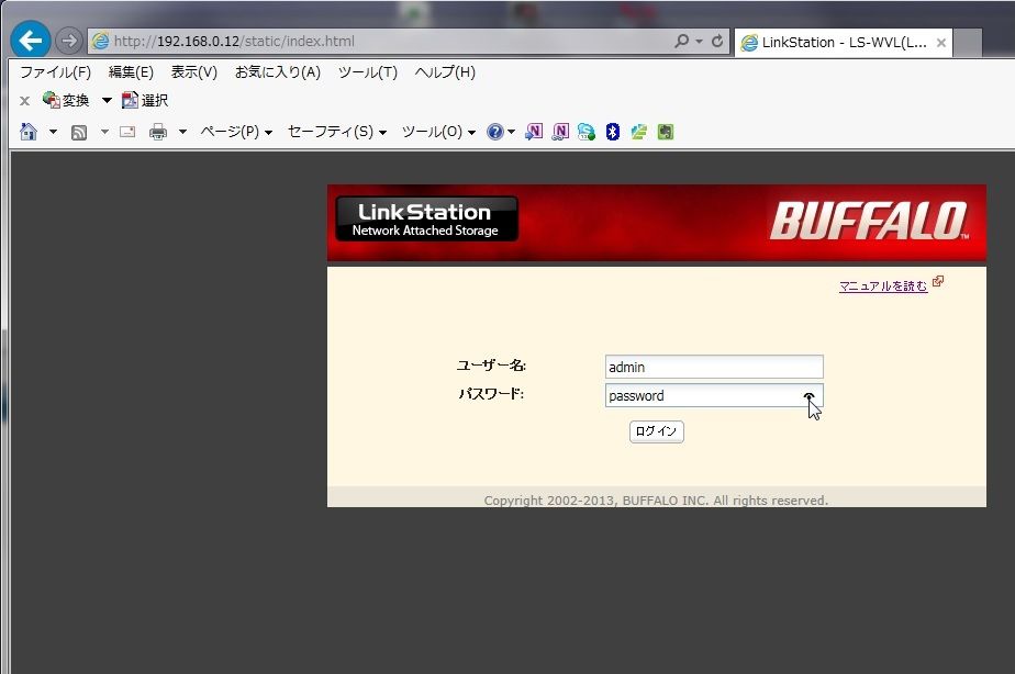 ① NAS裏側の電源SWをOFF位置にしてシャットダウンする。