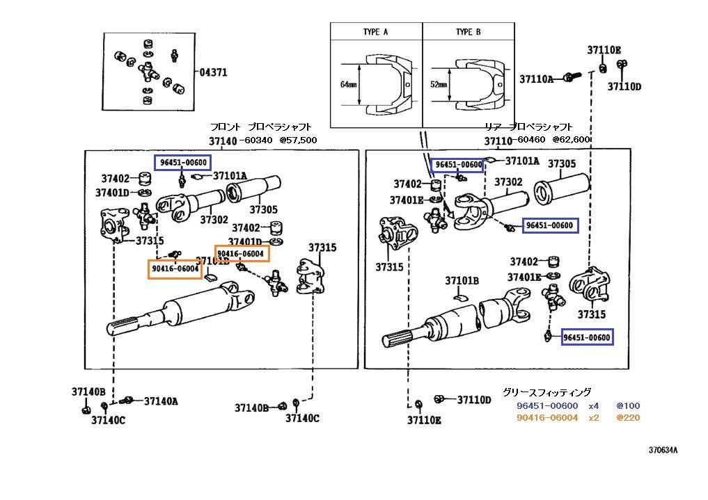 6カ所に 2種類のニップル(グリースフィッティング)が使われています。