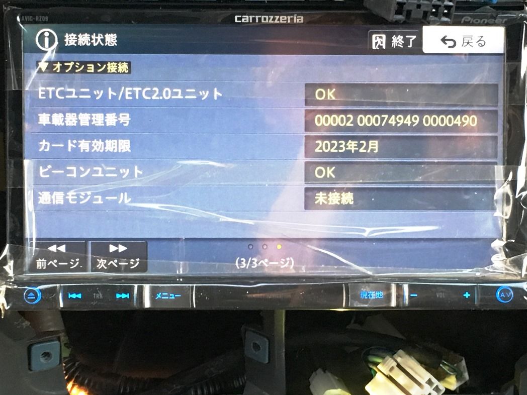 DSRC2との接続を確認した後、ナビの動作を逐次隠しながらパーツを戻す途中のセンターパネルを取り付けた後でモニターが格納位置に戻らない事態が発生!OFF後は最大開度で固定になったままなのには俄然とした。気を取り直して再度パーツを取り外して行くとセンターパネルのクリップを外した後で正常動作するようになった。じっくり検分するとモニターの下端とセンターパネルモニタ開口上端縁が干渉しているではないか。ナビを持ち上げるように固定ネジを締めなおし且つ開口上端縁を削ってクリアランスを確保した結果パネルを固定後は正常格納するようになった。