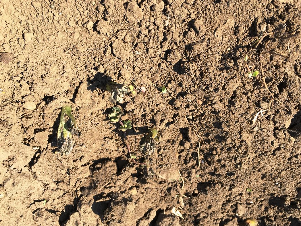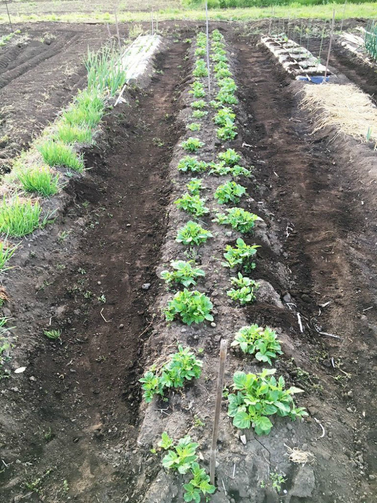 畑で芽欠きと土寄せ