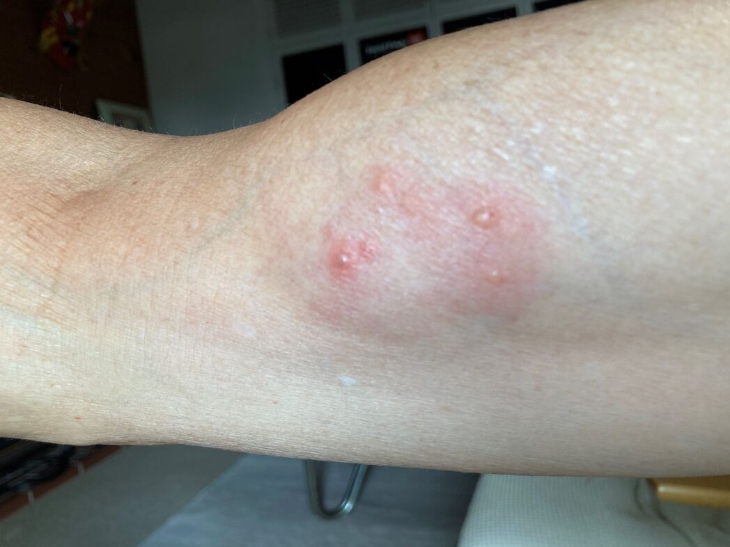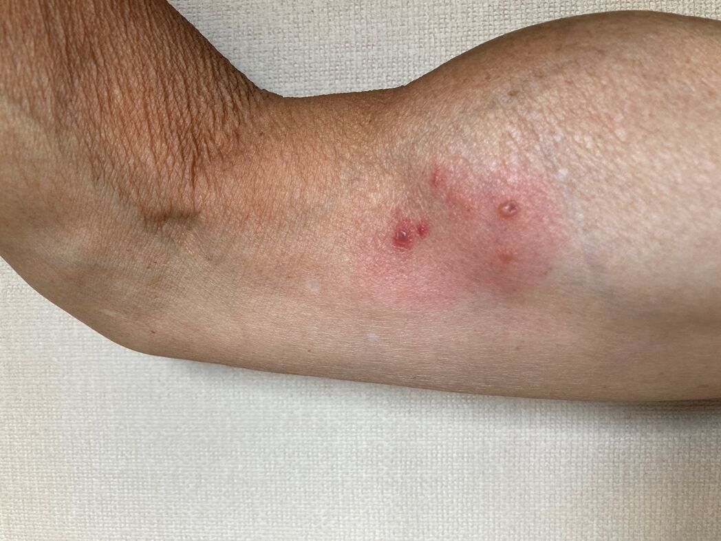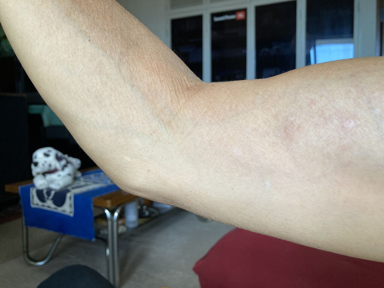 皮膚科の診察。未だ動かすと「強張り」を感じるがほぼ完治。