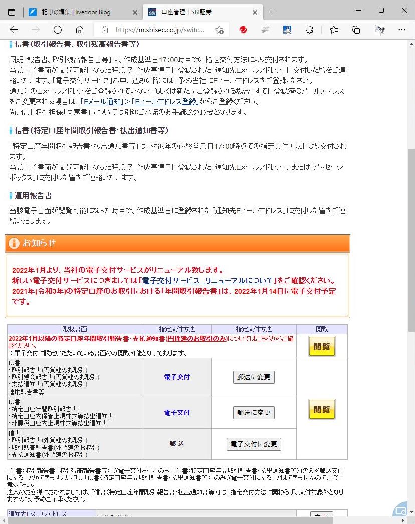 毎年揃えるのに困っている今年も SBI証券分を失敗。昨年末時点で『郵送交付』のままだったので 1/18(火)になって届いた。