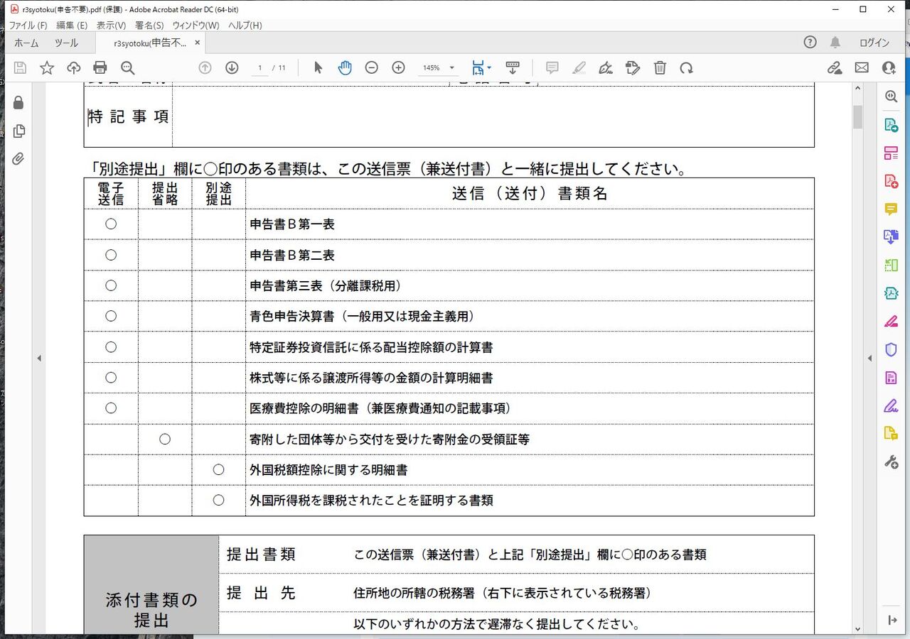 はい=申告不要 いいえ=所得税と同じ課税方法 「別途提出」確認