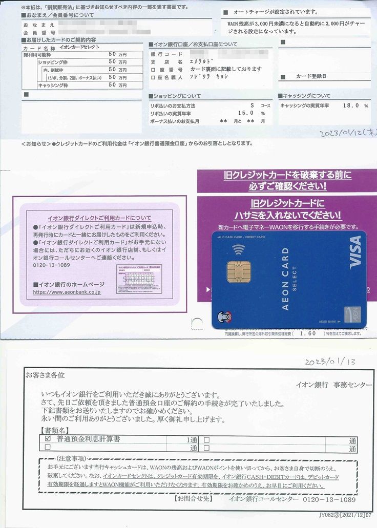 ④AEON CARD selectが書留で届いた??? 2023/01/12 AM