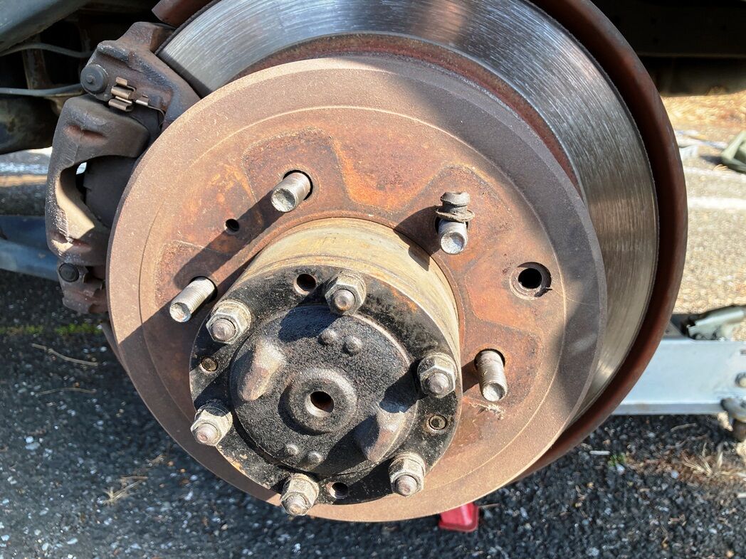 予想通りパーキングブレーキのシュー調整はリアディスクブレーキを付けたままで調整穴から可能なことが確認できた。