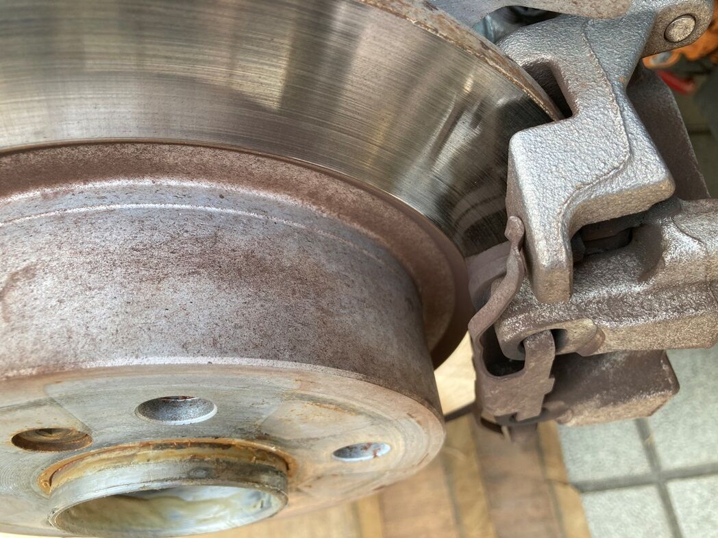 ブレーキパッド残量を測りたかったが後輪はキャリパーに覆われていて目視できなかった。最後の交換は 2017/02/02 140,379km だったので問題はなかろう。