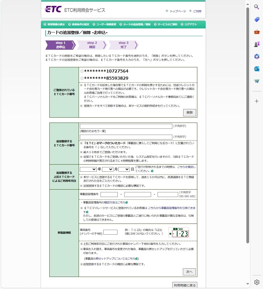 顔と運転免許証の画像送信、クレジットカード情報入力。