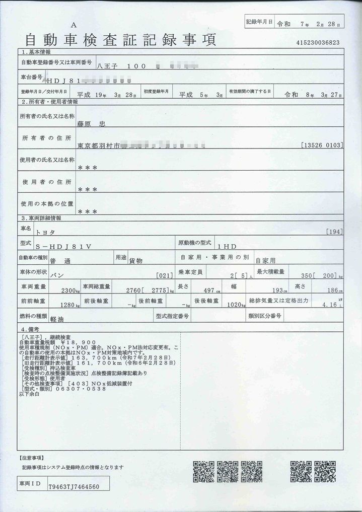 2025/02/28 継続車検 163,736km