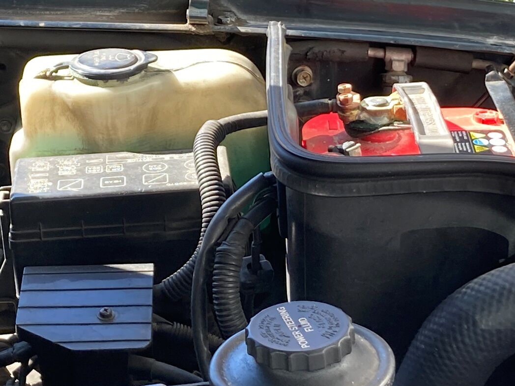助手席側バッテリーターミナルのサルフェ―ションをクリーニング。
