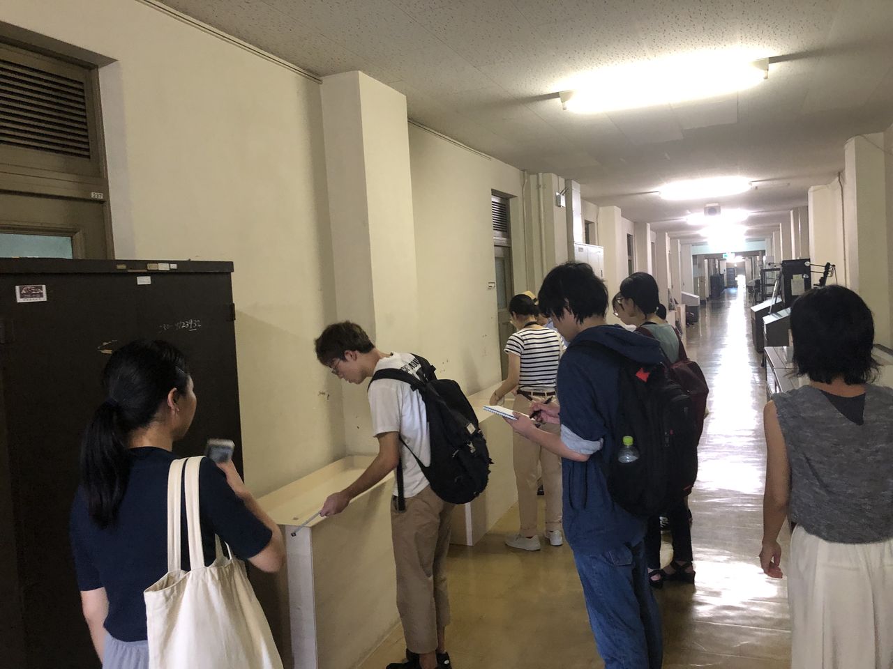 展示ケースの調査をする班、展示会場の調査をする班の2班に分かれ、各自で調査を進めました。