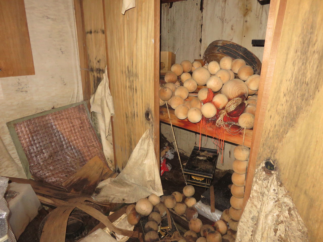 ここも物がいっぱい。あとご覧の通り暗いのでコウモリが常駐。昔はコウモリが出たらビビッてたけど、最近あんまり何も思わなくなってきた。