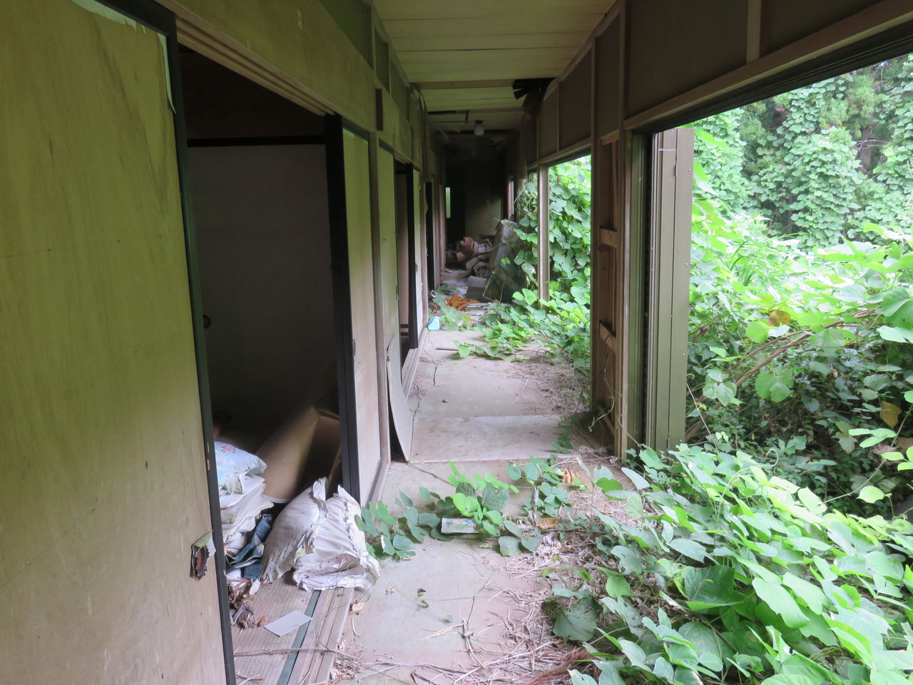 廊下。荒れてるのは良いとして、草木の繁殖で行けない場所があったのが痛い。