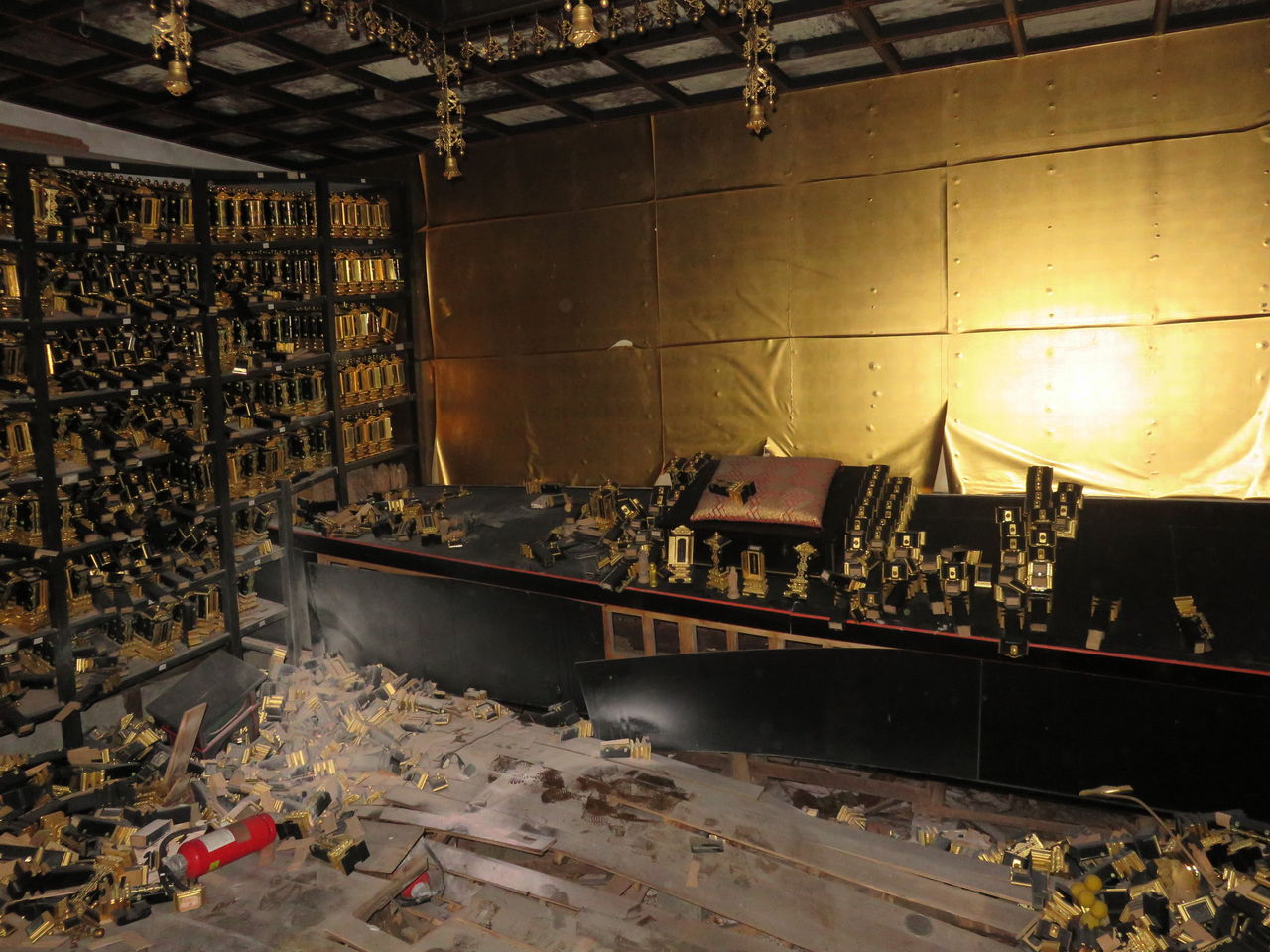 壇上の横に棺が。怖かったので開けなかった。あと壇上にコウモリが居たので、もしかしたらドラキュラでも居たかも知れないし。
