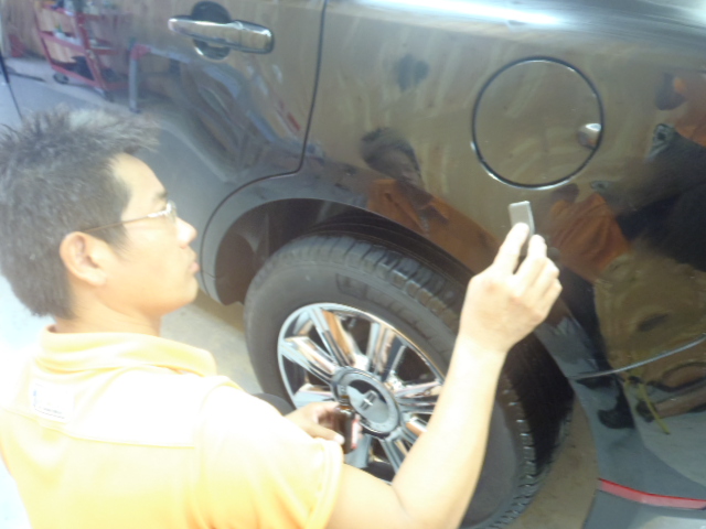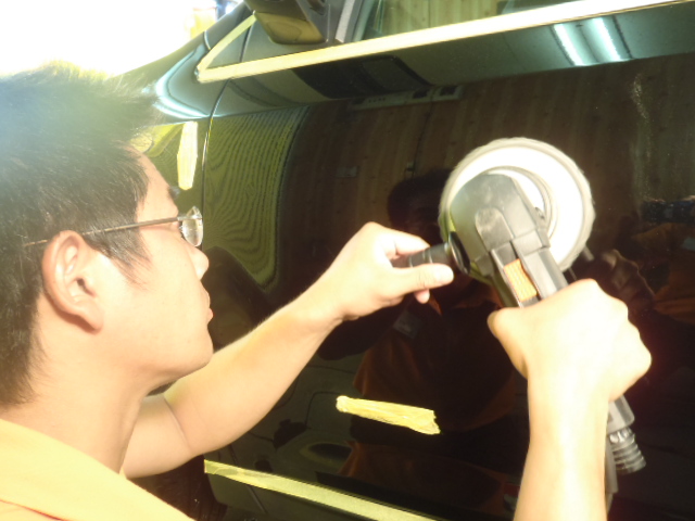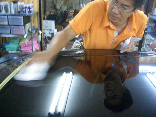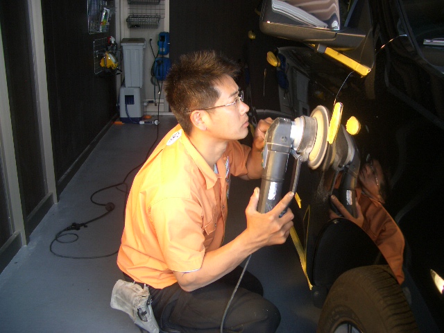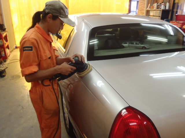 傷取り磨きを終了させ艶出し磨きを行ないます。丁寧にパネルごとに仕上げて参ります。