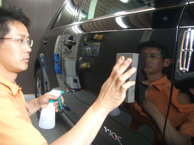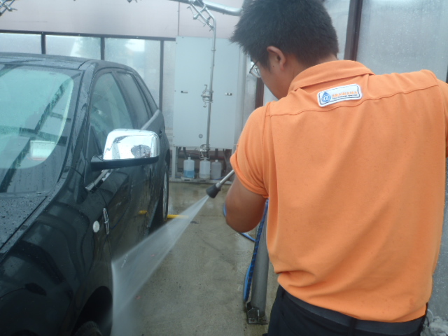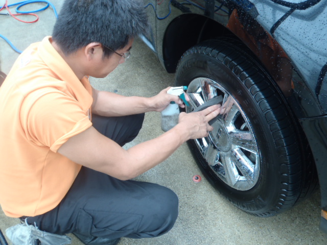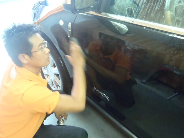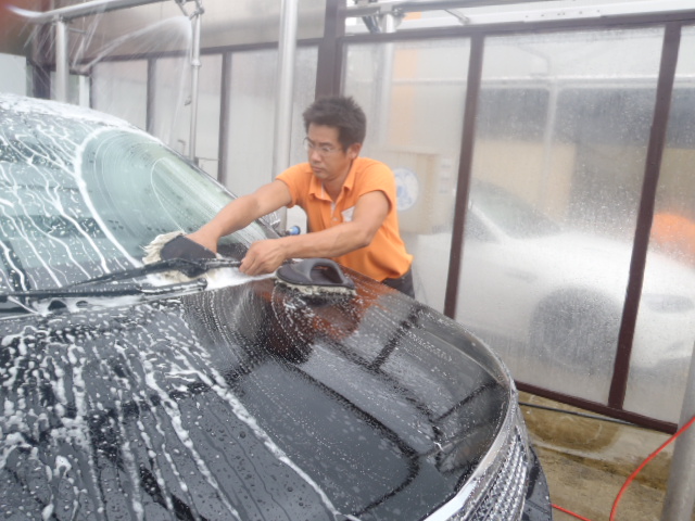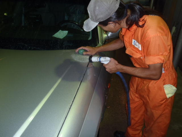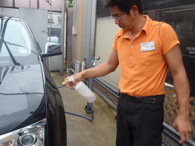 磨き作業が終わったら再度洗車をし脱脂作業を行ないます。コンパウンドカスをしっかり洗い流しコーティングの付着をUPさせます。