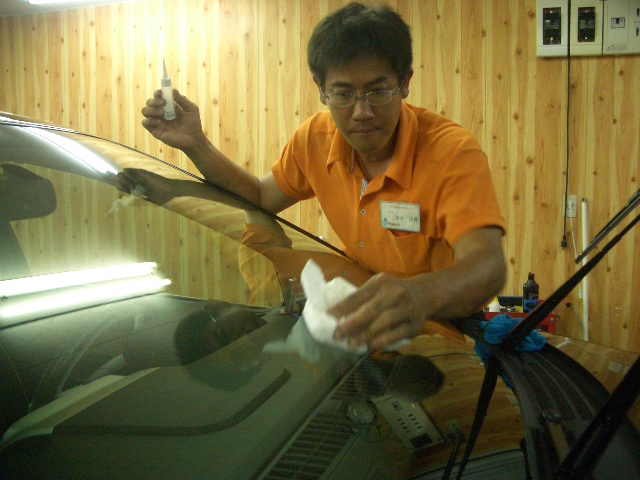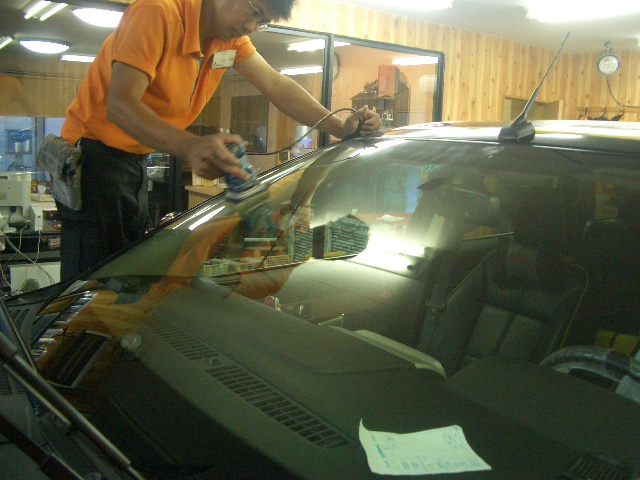 フロント3面の表面は通常の油膜取りでキレイになり、コ−ティングをしっかり付着させます!